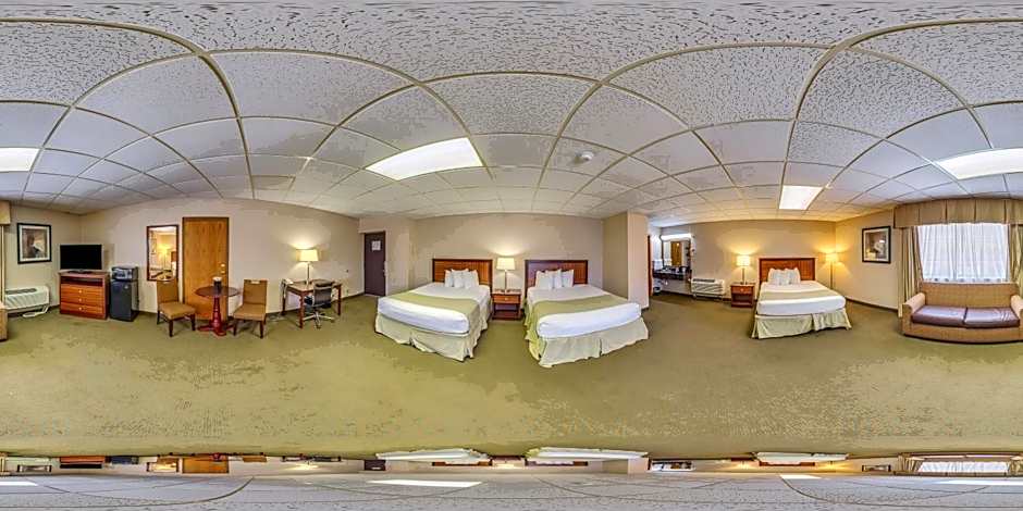 The spacious family room features a tea and coffee maker, a seating area, a safe deposit box, heating and a TV with cable channels. The unit has 4 beds.